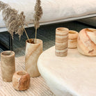 These vases are specially crafted and shaped by hand, through a multi-step process. In order for the fine crystals of the stone to retain their strength, cutting of the stone must be done gradually over the course of days.
