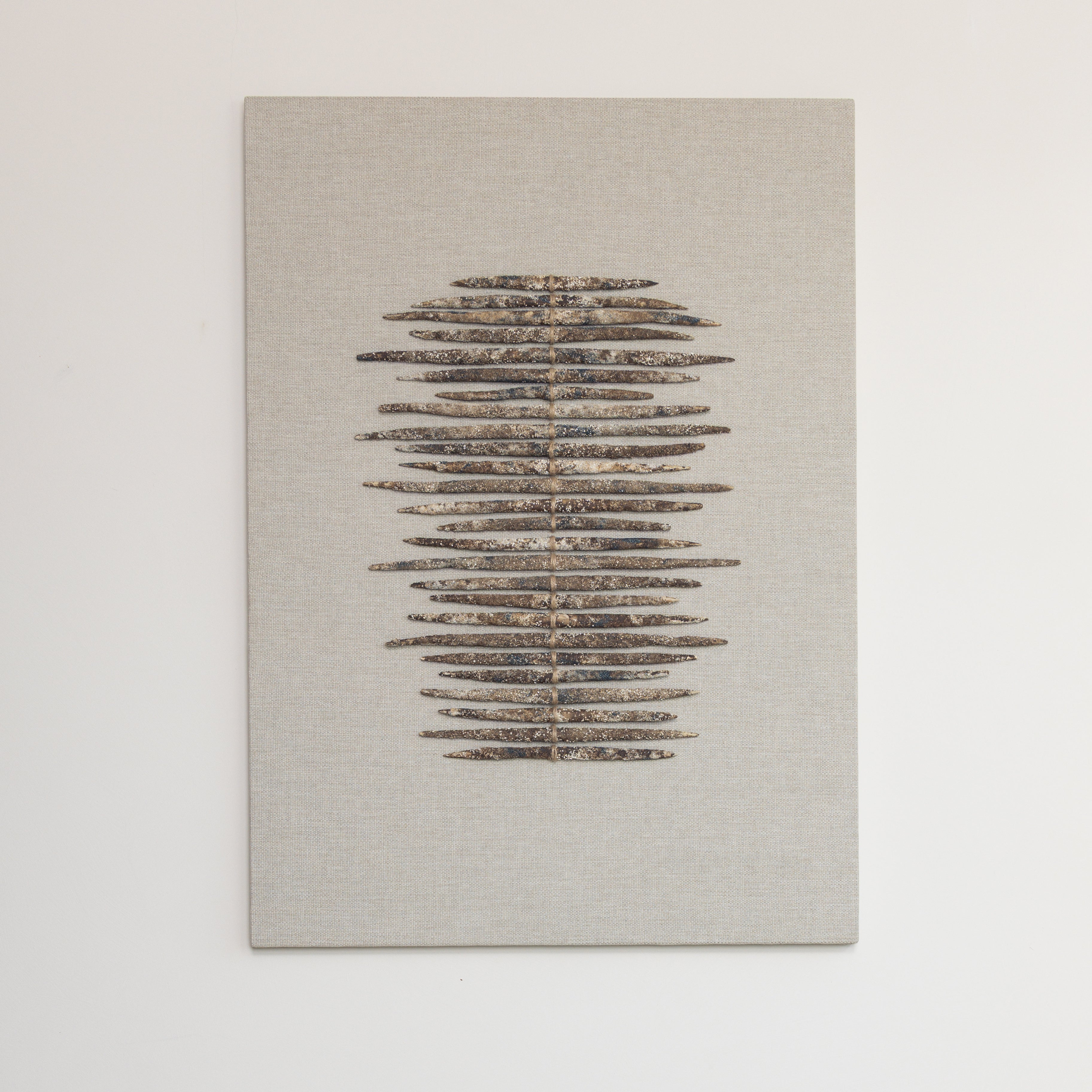 A wall piece shaped by repetition and subtle variation, where material, rhythm, and silence come into quiet balance.