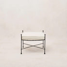 Introducing our Provence Ottoman. Crafted with a handmade thin iron frame and plush outdoor boucle fabric, this ottoman is completely weather-proof, allowing you to lounge comfortably in style all year round.