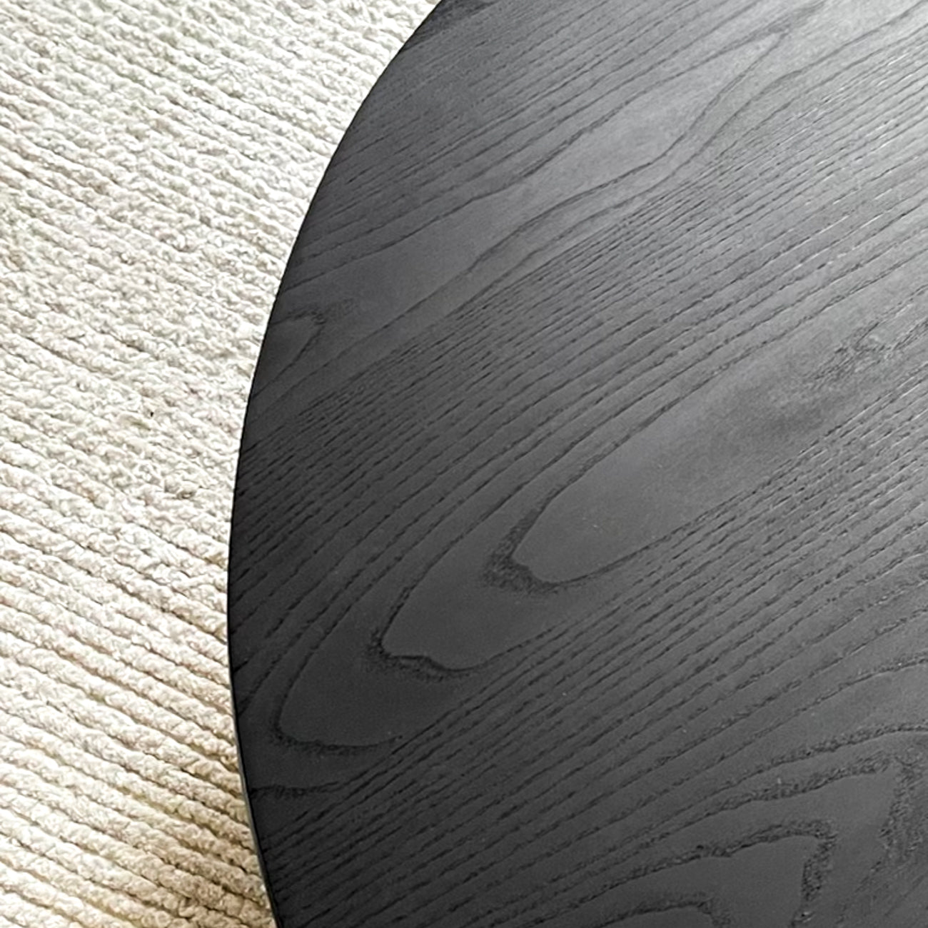 Materials: Ash wood with intense black matte finish and flat black metal legs.