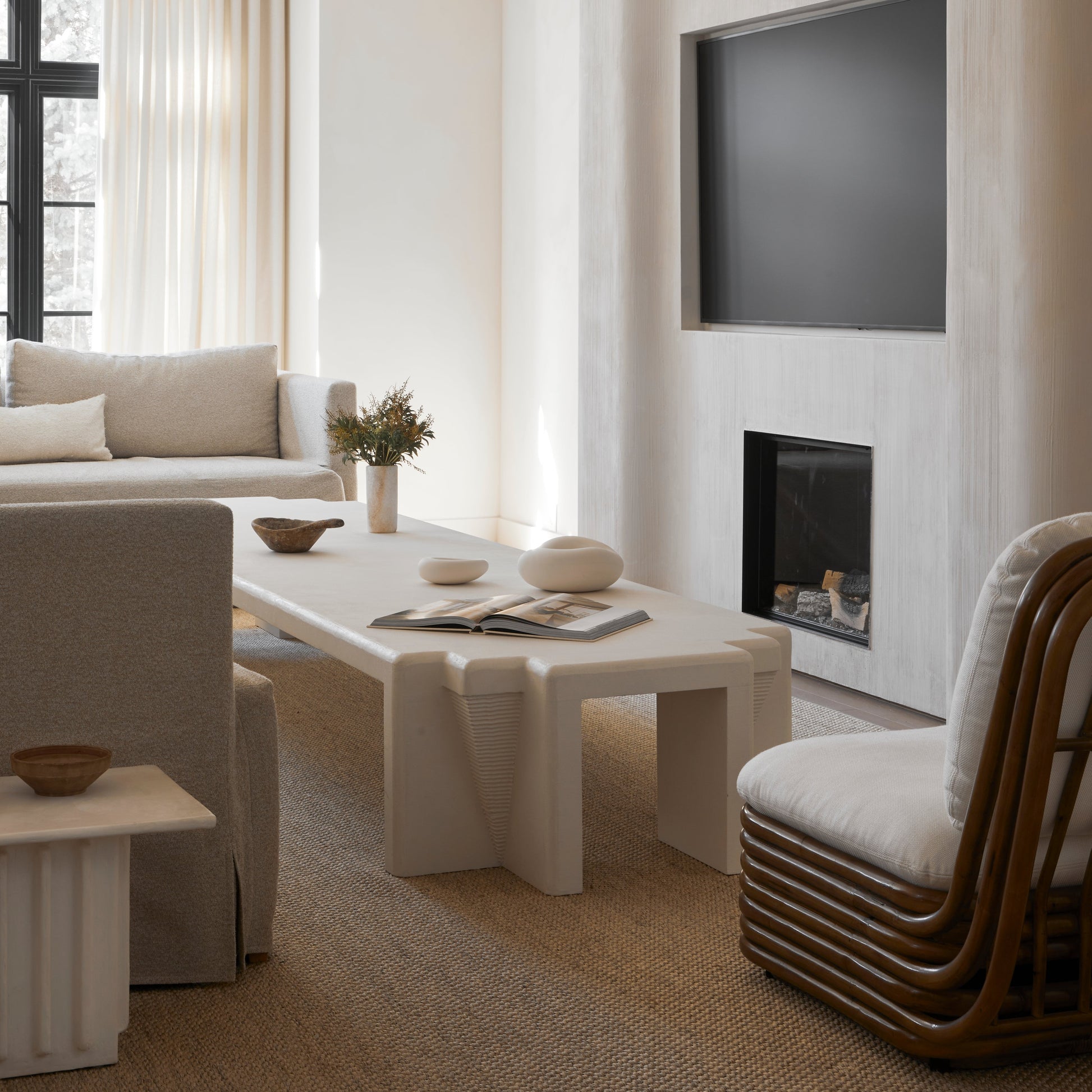Plaster coffee table with raked relief detailing.