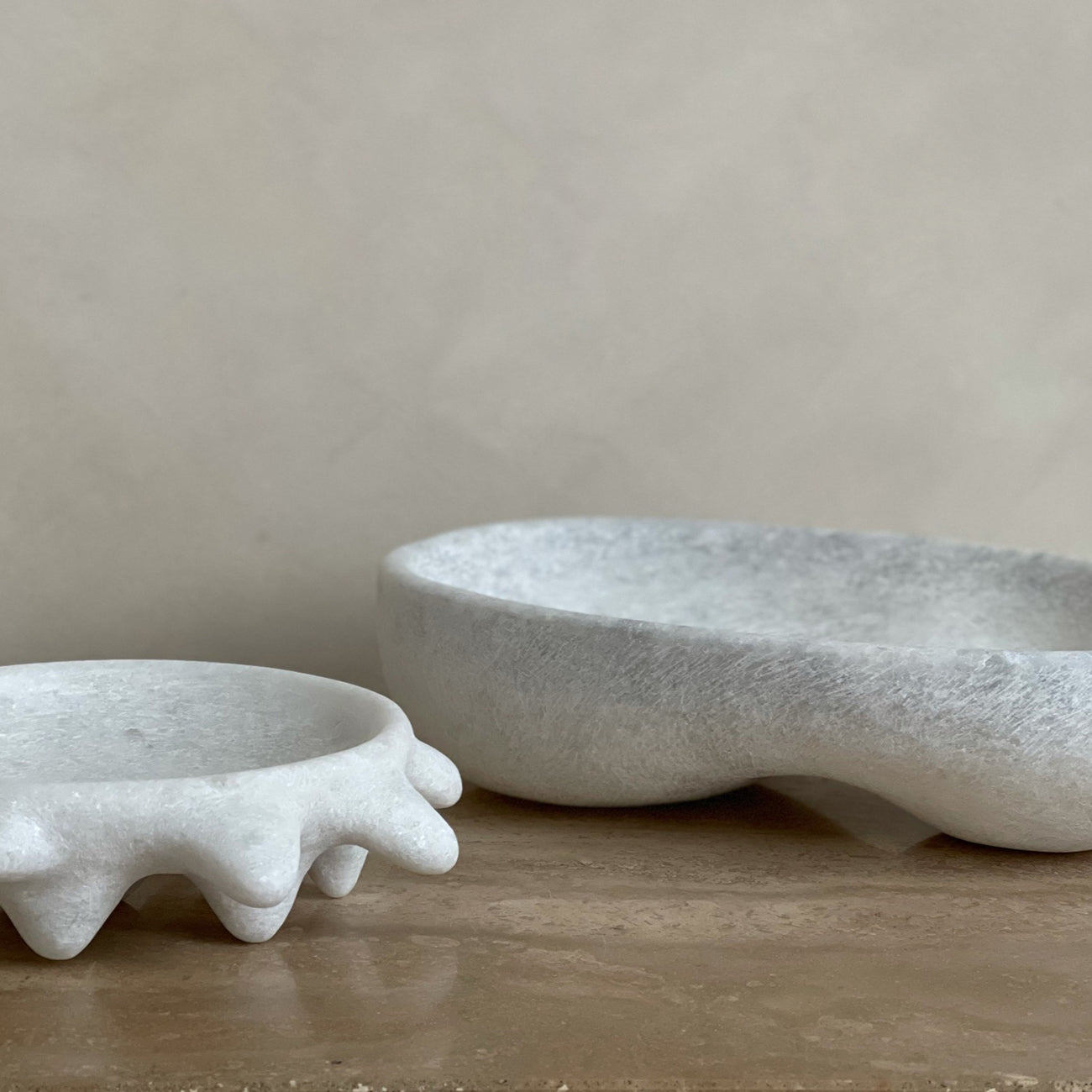 Kalodromo, which means “good way”, is a small manufactory on the Greek island of Naxos in the heart of the Aegean Sea. All vessels made by Tom von Kaenel are unique and handcrafted. The Naxian marble is sourced from the surrounding marble quarries of the island. Typically white, grey or yellow-brown colour, its structure is crystalline. No measuring instruments other than compasses and scales are used in the production of an object - the eye decides the final shape. This small deviation in symmetry gives the form its individual tension. These unique vessels are kept raw, meaning the surfaces are deliberately left unpolished to leave traces of the craft visible.